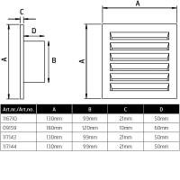 Fixed louvre with round stub designed for standard duct dimensions and bushings.
