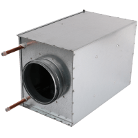 Water heating element for installation on supply air duct. For use where connection of the district heating network is required, or where you want the maximum reduction in power consumption. The regulation thermostat is controlled by the automatic control system in the unit.