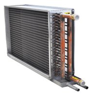 Batteriene har samlerør i kobber med pluggede uttak til lufting og tapping. Tilkoblingsdimensjonen fremgår av den tekniske beregningen. Batteriene er merket slik at det fremgår hva som er inntak og uttak på væskesiden, i likhet med luftretning. Batterienes byggedybde varierer med antall rørrader og fremgår av den tekniske beregningen. Kjølebatteriene er utstyrt med dryppskål med drenering. De har dryppskål i varmforsinket stålplate. Tildekte gavler med innkapslede samlerør og rørbøyer utenfor tilkoblingsmålene. Kjølebatteriet er utstyrt med geid. Ved bestilling, fyll ut bestillingsskjema og send i retur til oss.