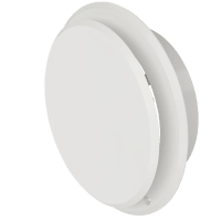 Flexit tallerkenventil rund plast 5". Med rund ramme og rund stuss. Luftmengden reguleres ved å skru på lokket. For veggmontering.