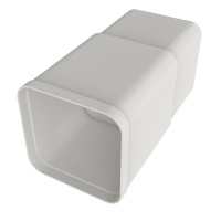 Väggenomföring anpassad för invändig klaffventil och utvändigt jalusigaller eller kåpa. Användning av teleskopkanaler förhindrar att fukt tränger ut i väggen och orsakar kondensoch rötskador.